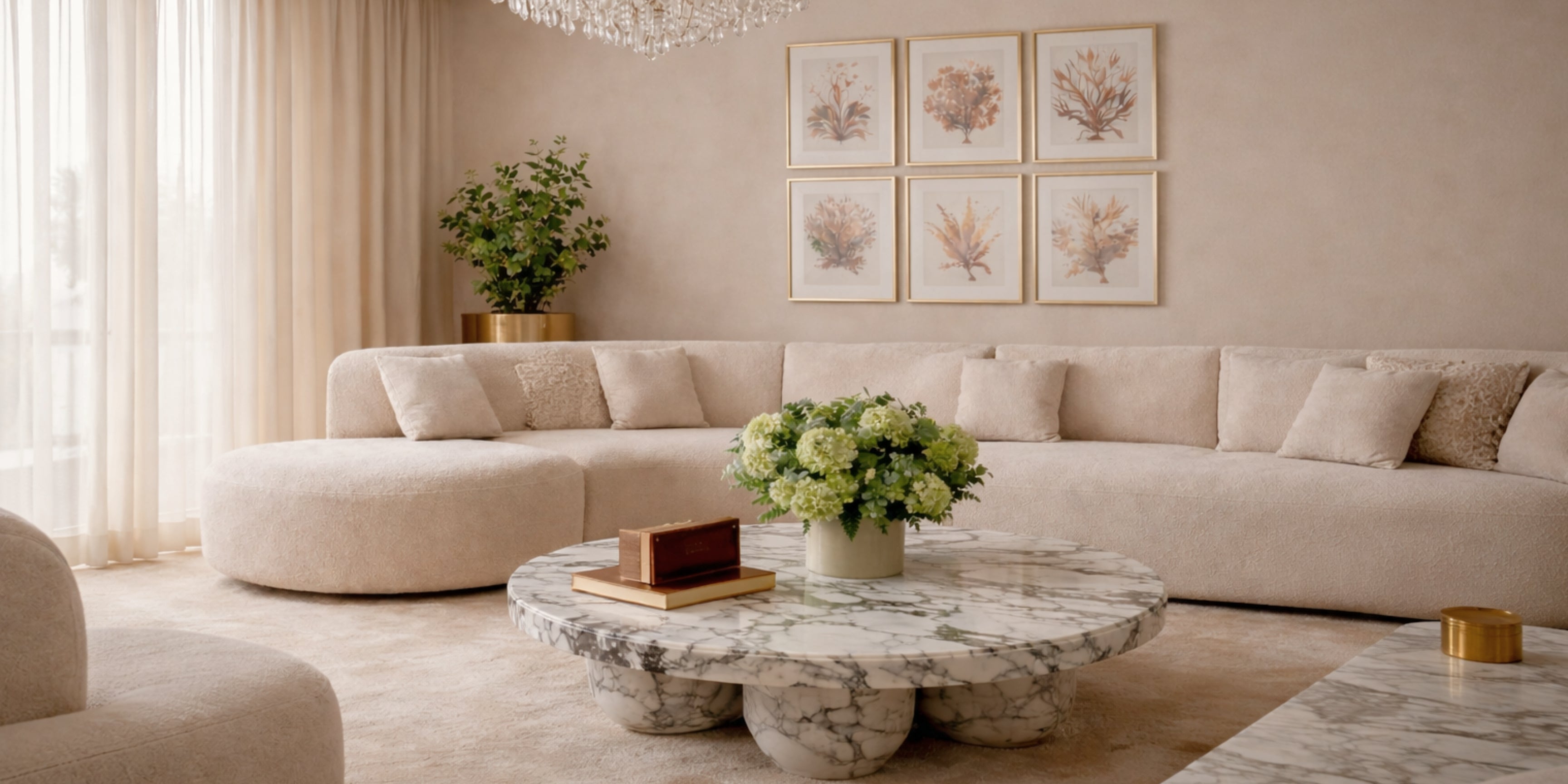 Heide Sculptural Coffee Table – Marble & Solid Mango Wood