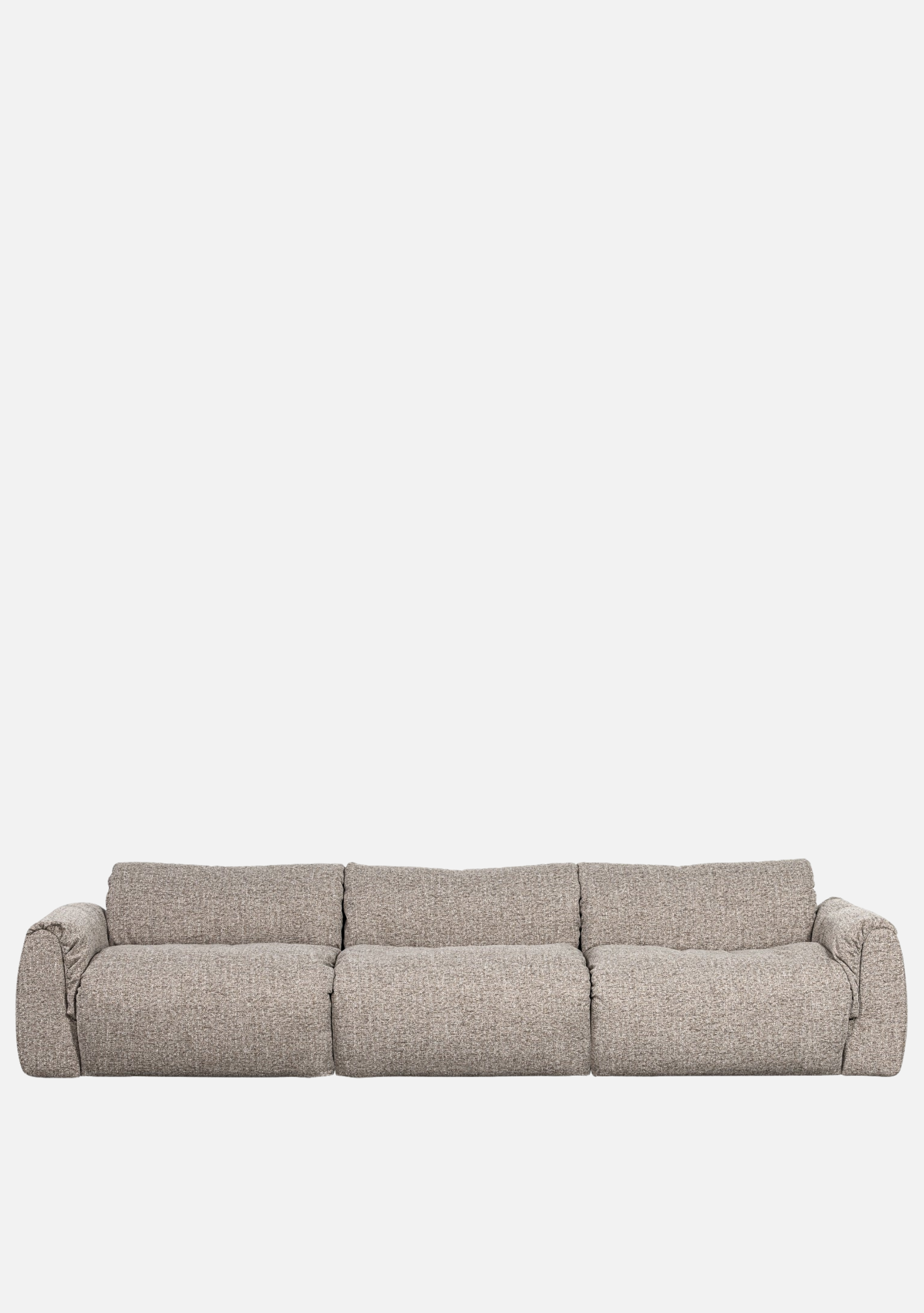 Its generously cushioned seats, supported by high-density foam, ensure lasting comfort and resilient support. Upholstered in timeless light brown bouclé, the sofa speaks to effortless living with a touch of Scandinavian sophistication.