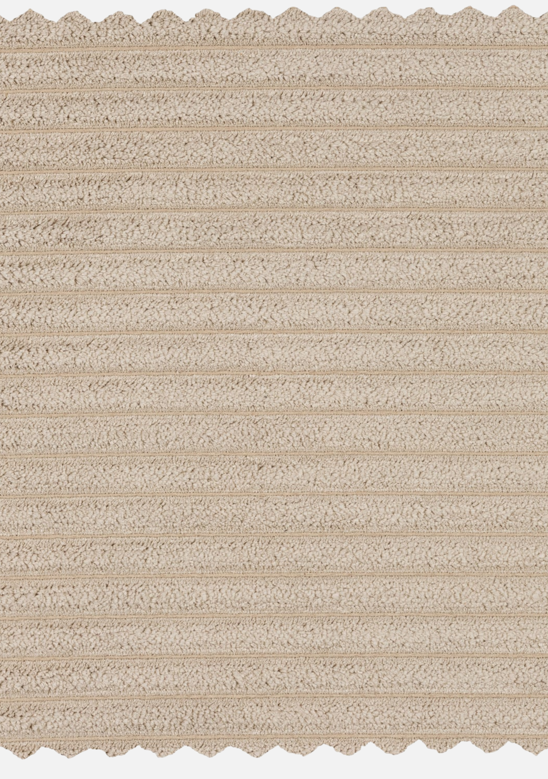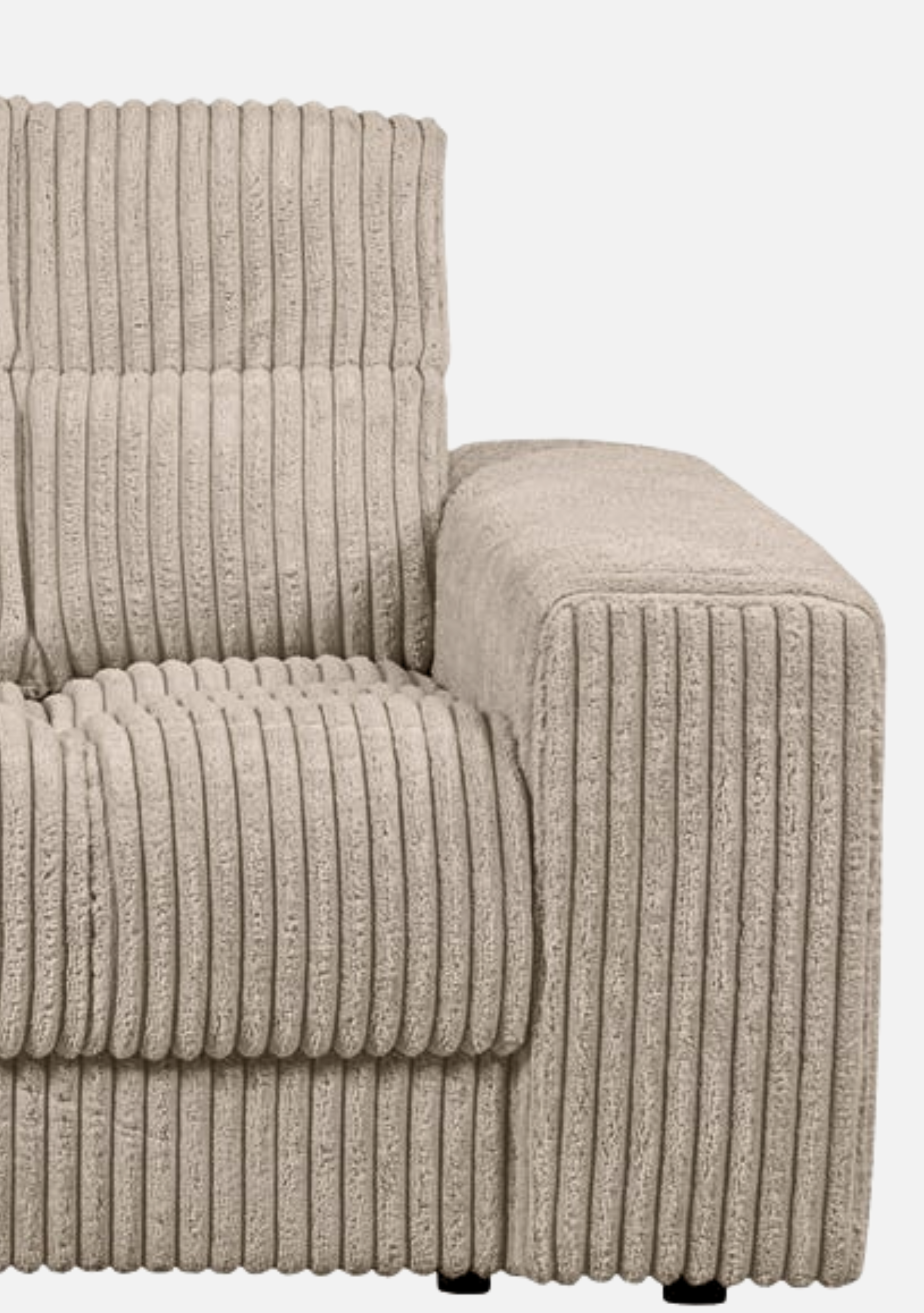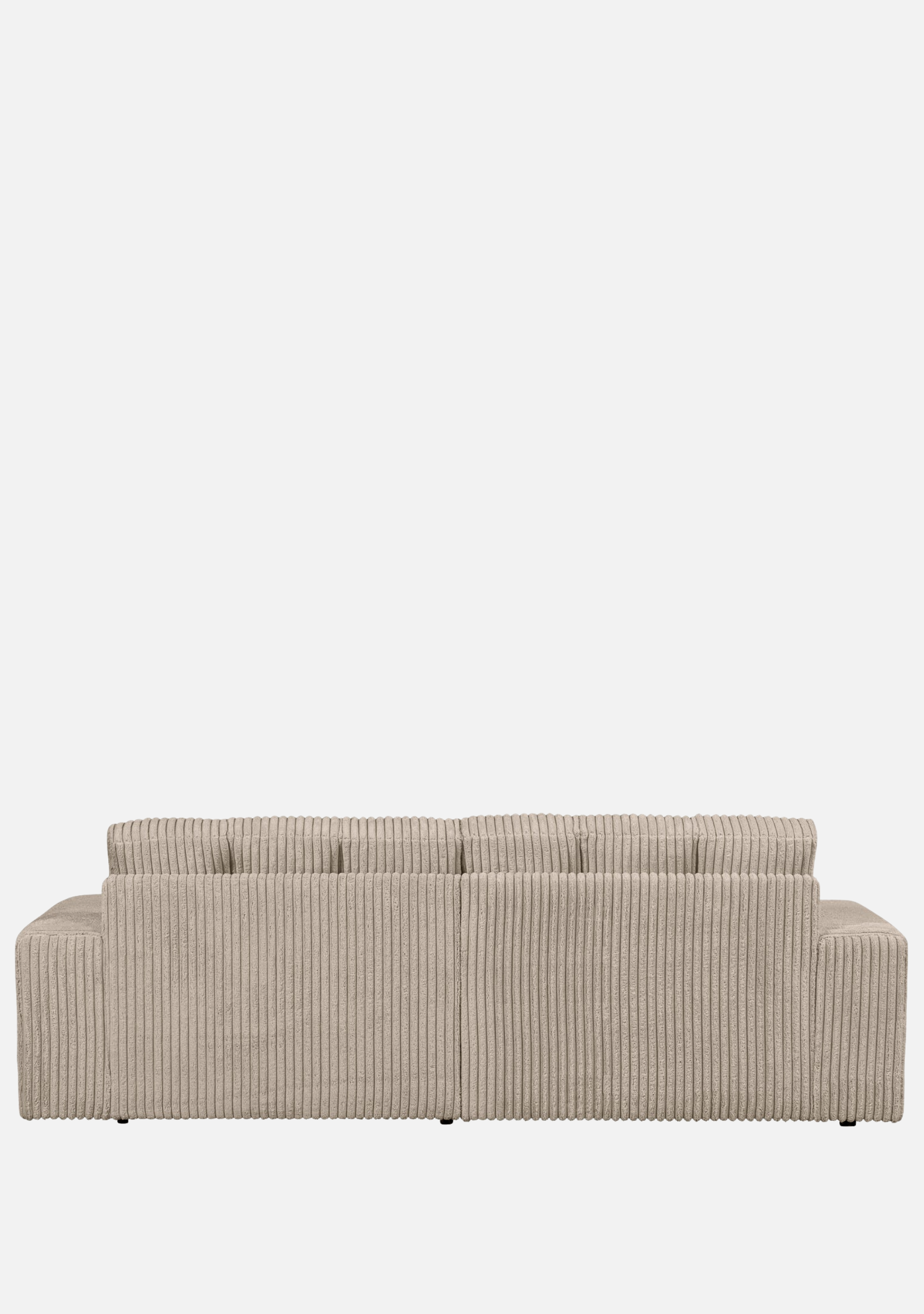 2-seater sofa 256×99×78 cm in ribbed travertin fabric. Dutch design, soft neutral texture, crafted in Europe for modern serene interiors.