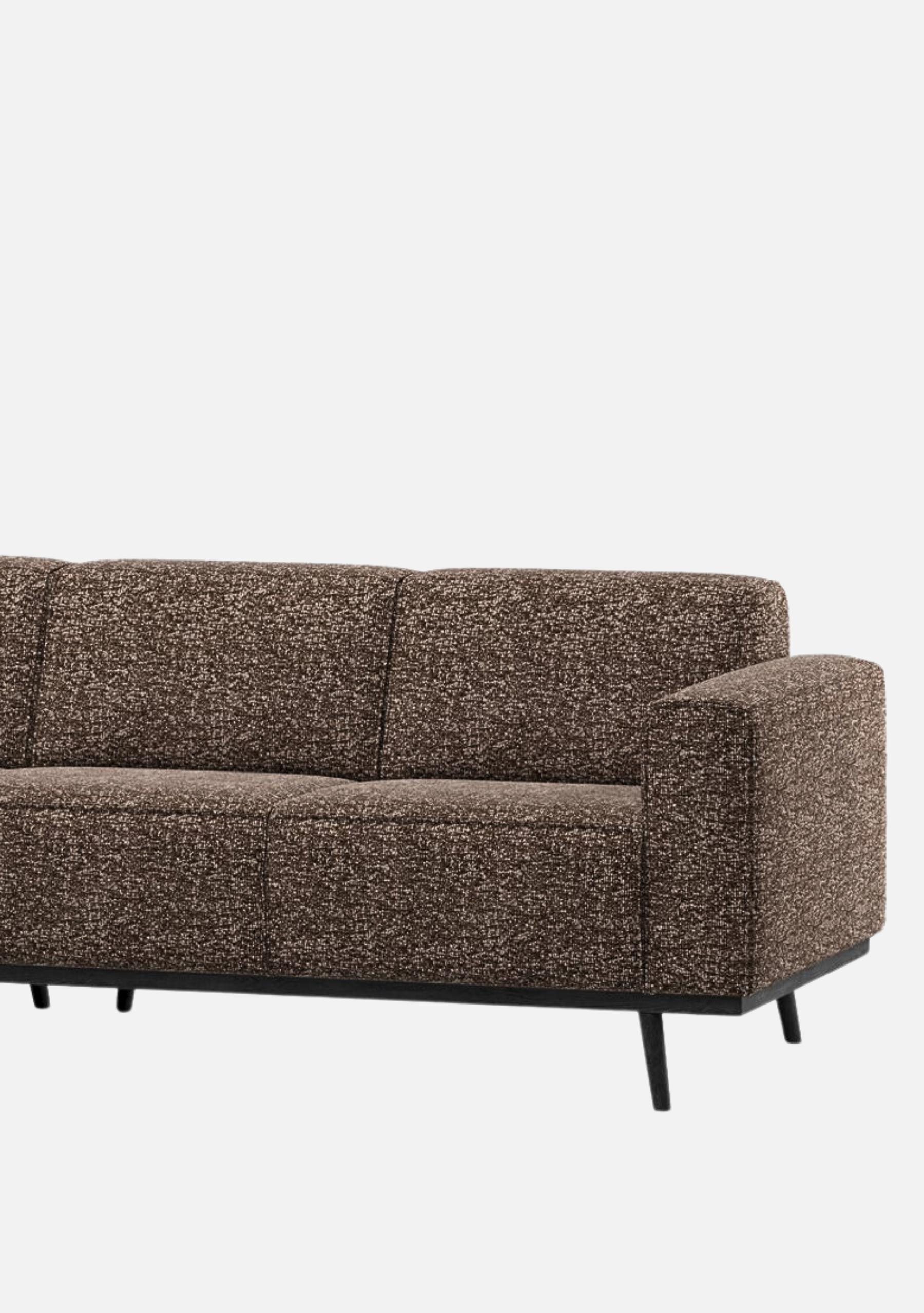 4-seater sofa 280×93×77 cm in brown melange fabric. Modern Dutch design with warm tones and architectural comfort.