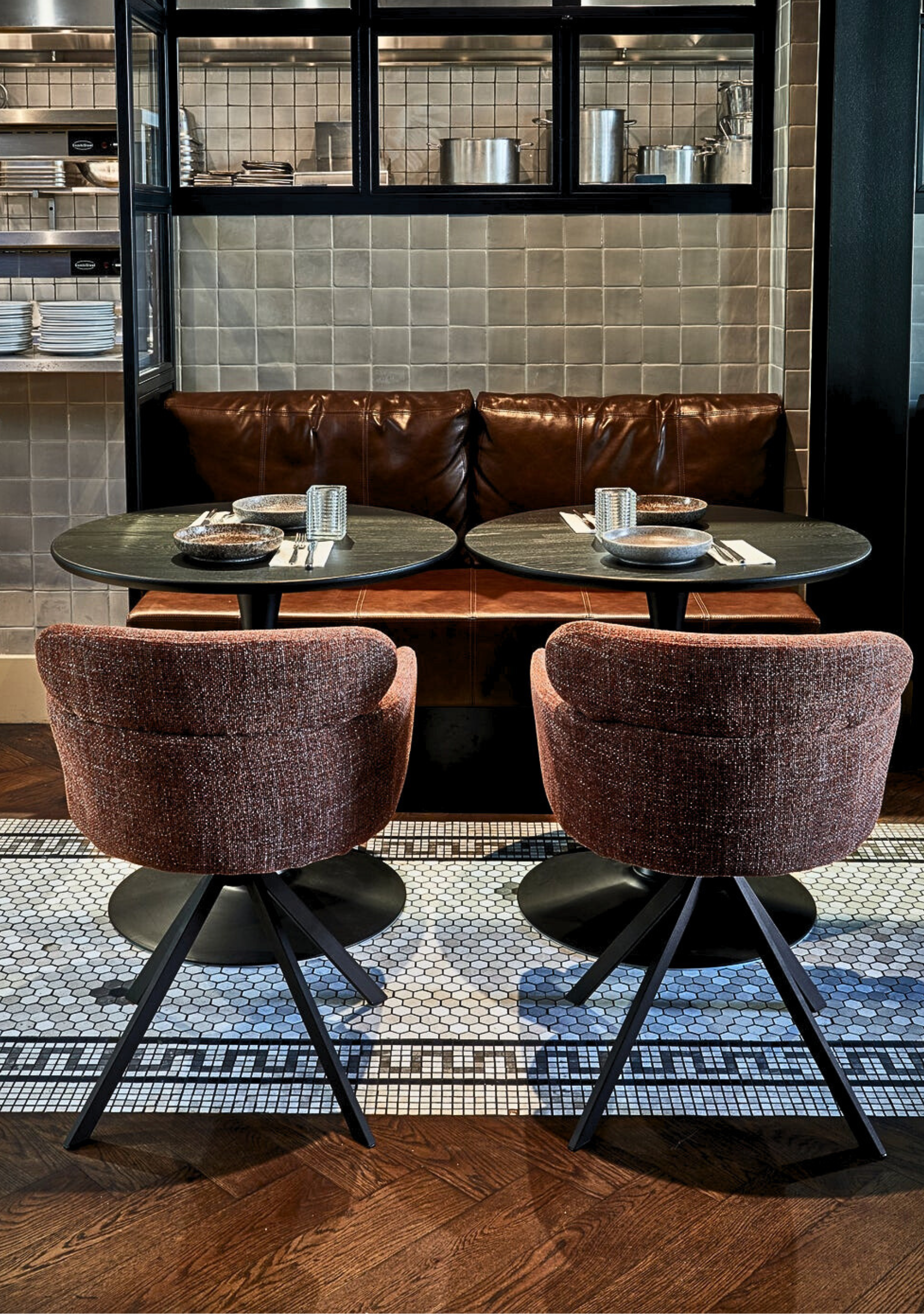 With a diameter of 80 cm and height of 74 cm, this piece is ideal for intimate dining spaces, boutique cafés, or refined interiors seeking a sleek yet warm accent.