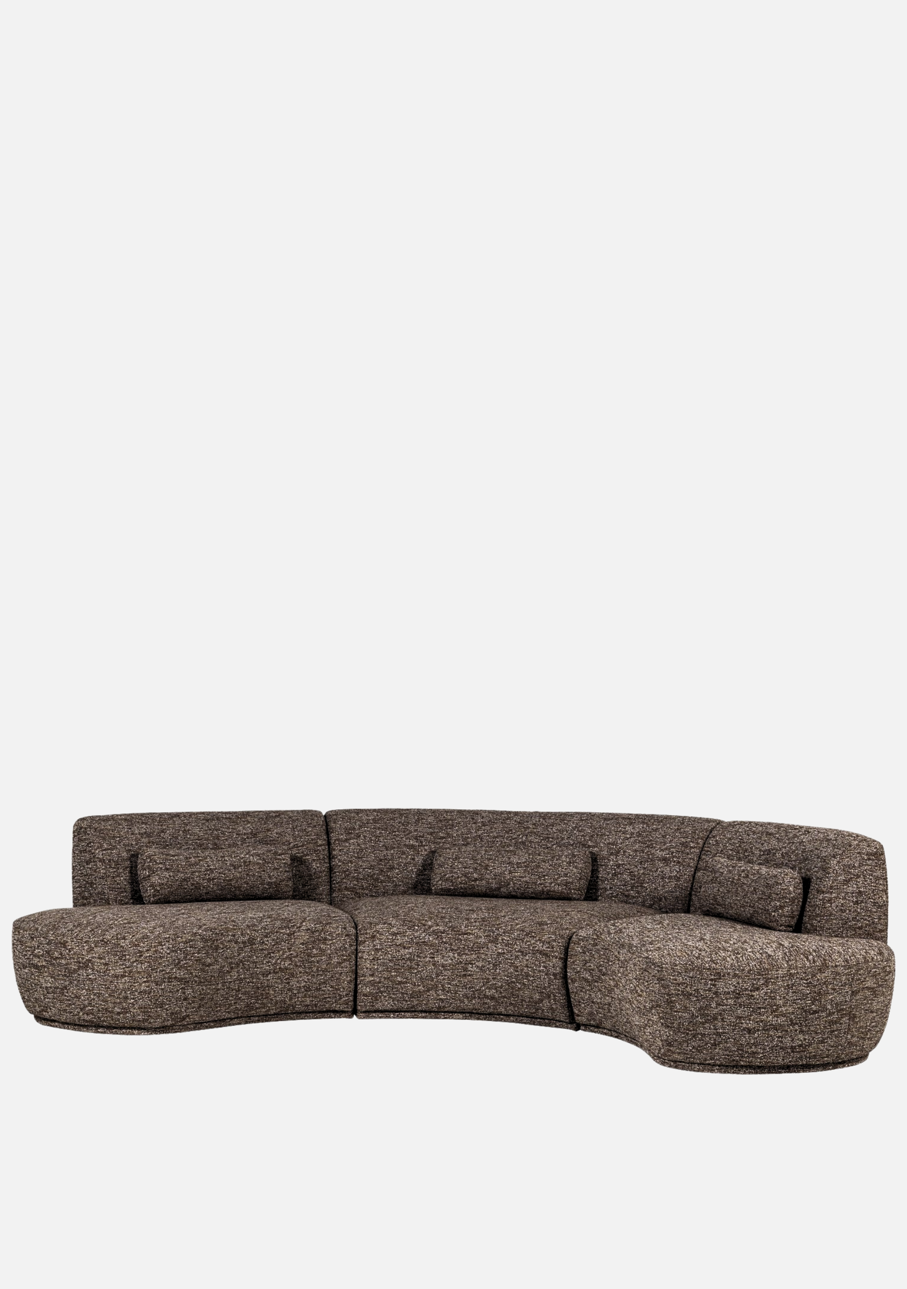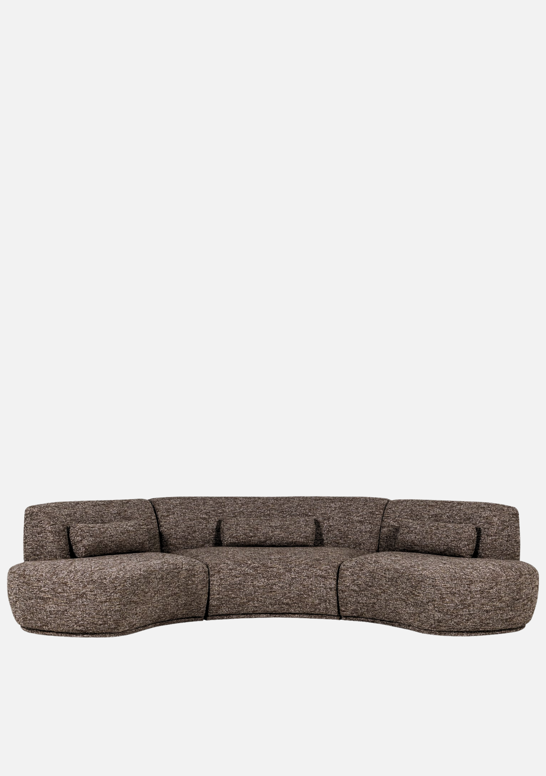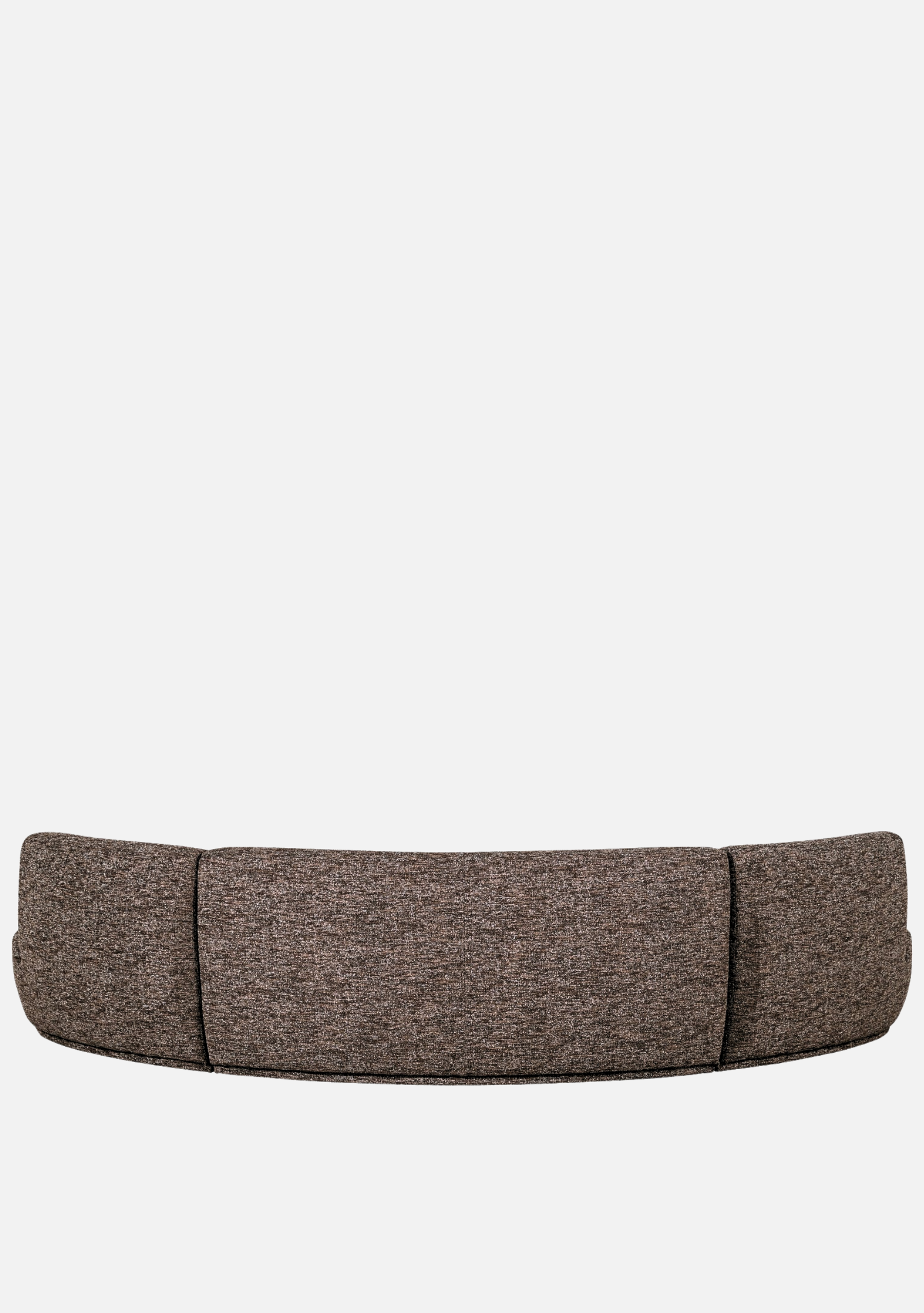 Half-round 6-seater sofa 320×176 cm in brown mélange fabric. Earthy tone, curved silhouette, modern natural elegance.