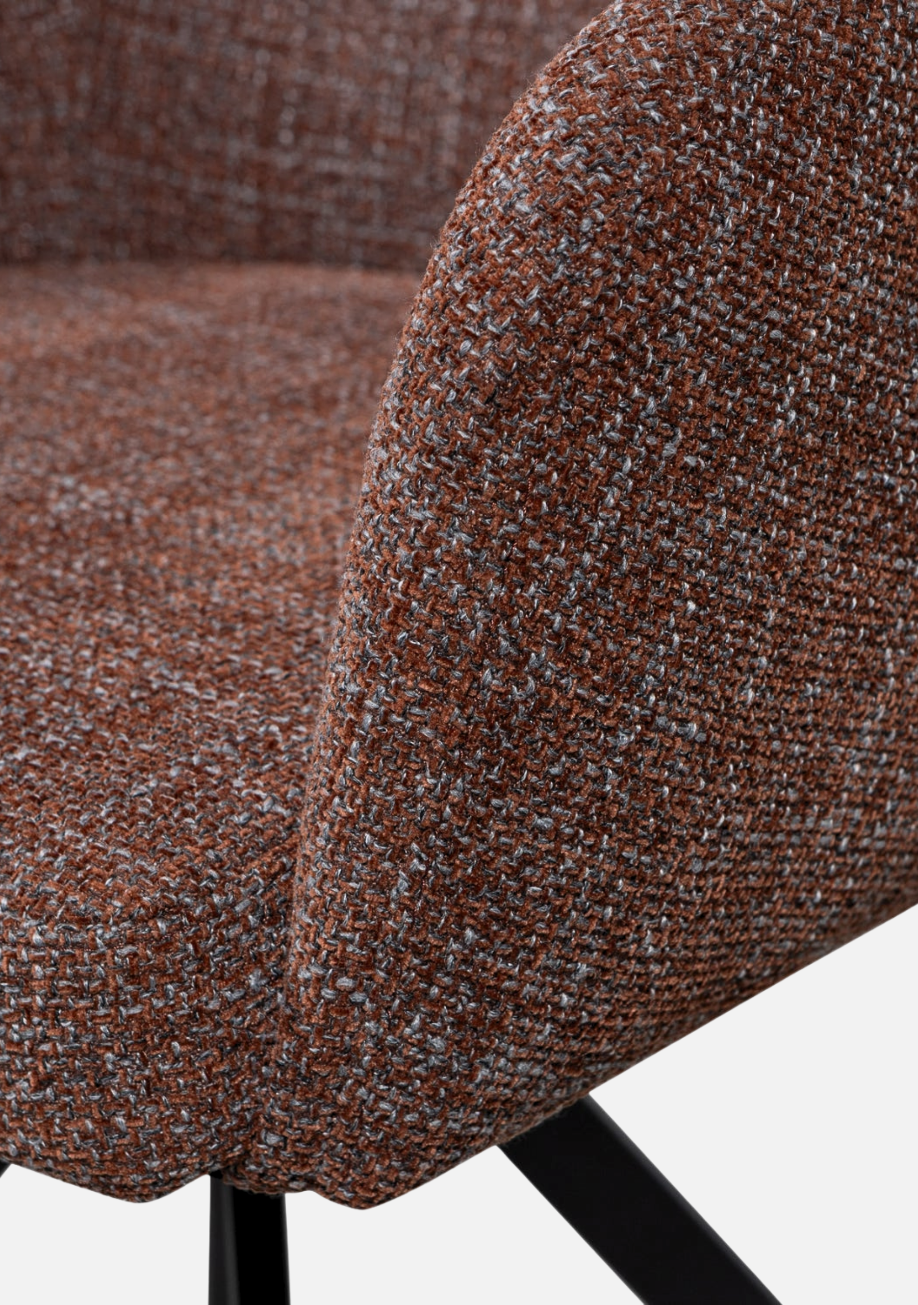 The Fenne Chairs embody quiet luxury and tactile comfort. Their warm chestnut woven fabric and sculpted silhouette bring a sense of calm sophistication to any setting. The smooth swivel base and embracing form invite long evenings and effortless conversation. Perfect for refined dining spaces, elegant restaurants, and stylish hotel interiors, they blend contemporary ease with timeless charm. Delivered as a set of two, the Fenne Chairs add depth, comfort, and understated beauty wherever they stand.