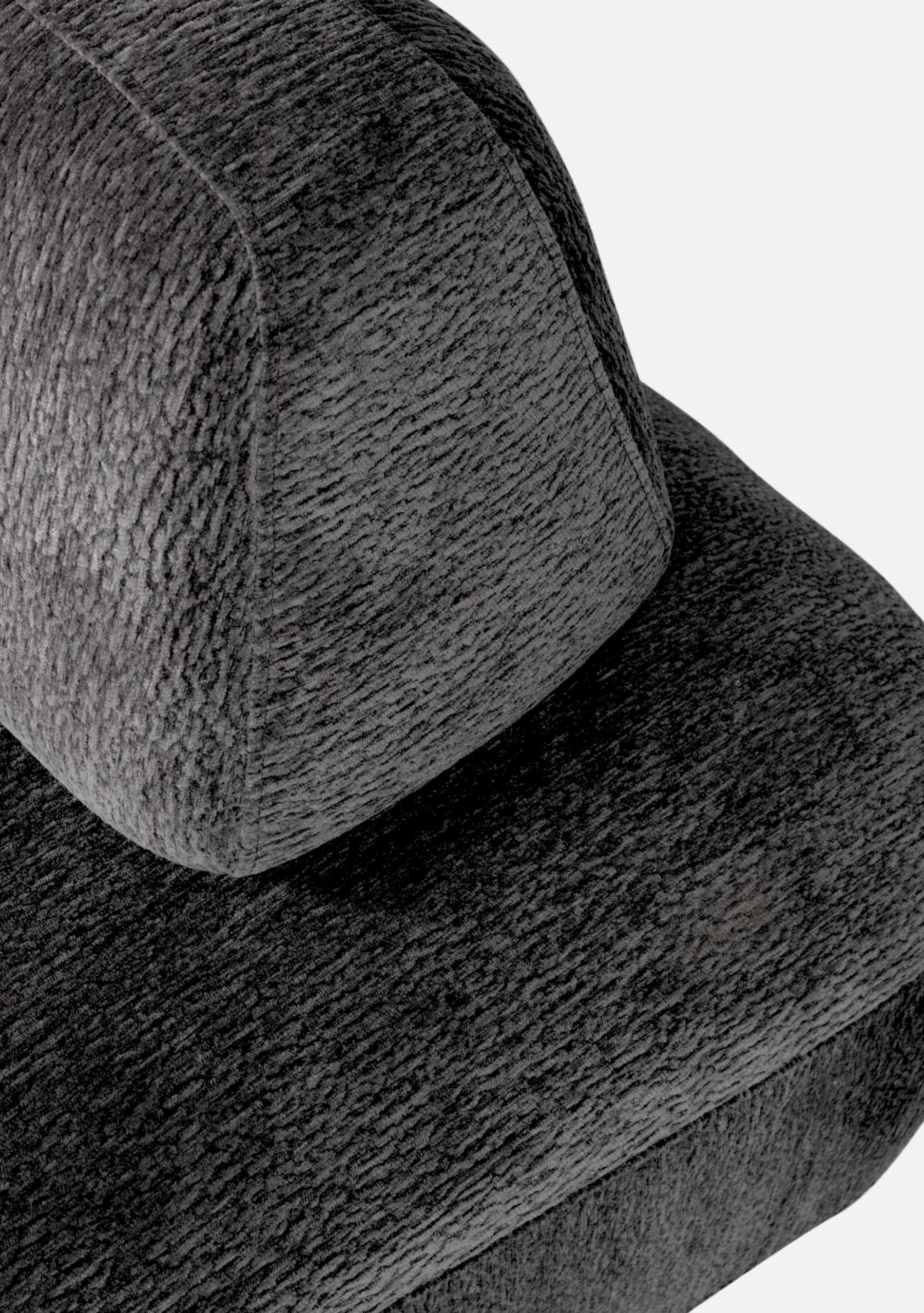 Wrapped in rich charcoal jacquard, this modular armchair pairs visual depth with an irresistibly soft texture. The movable backrest adapts to your posture, allowing a personalized lounge experience. Its bold silhouette and tactile weave evoke the calm power of modern design, bringing a sculptural presence to any living space.