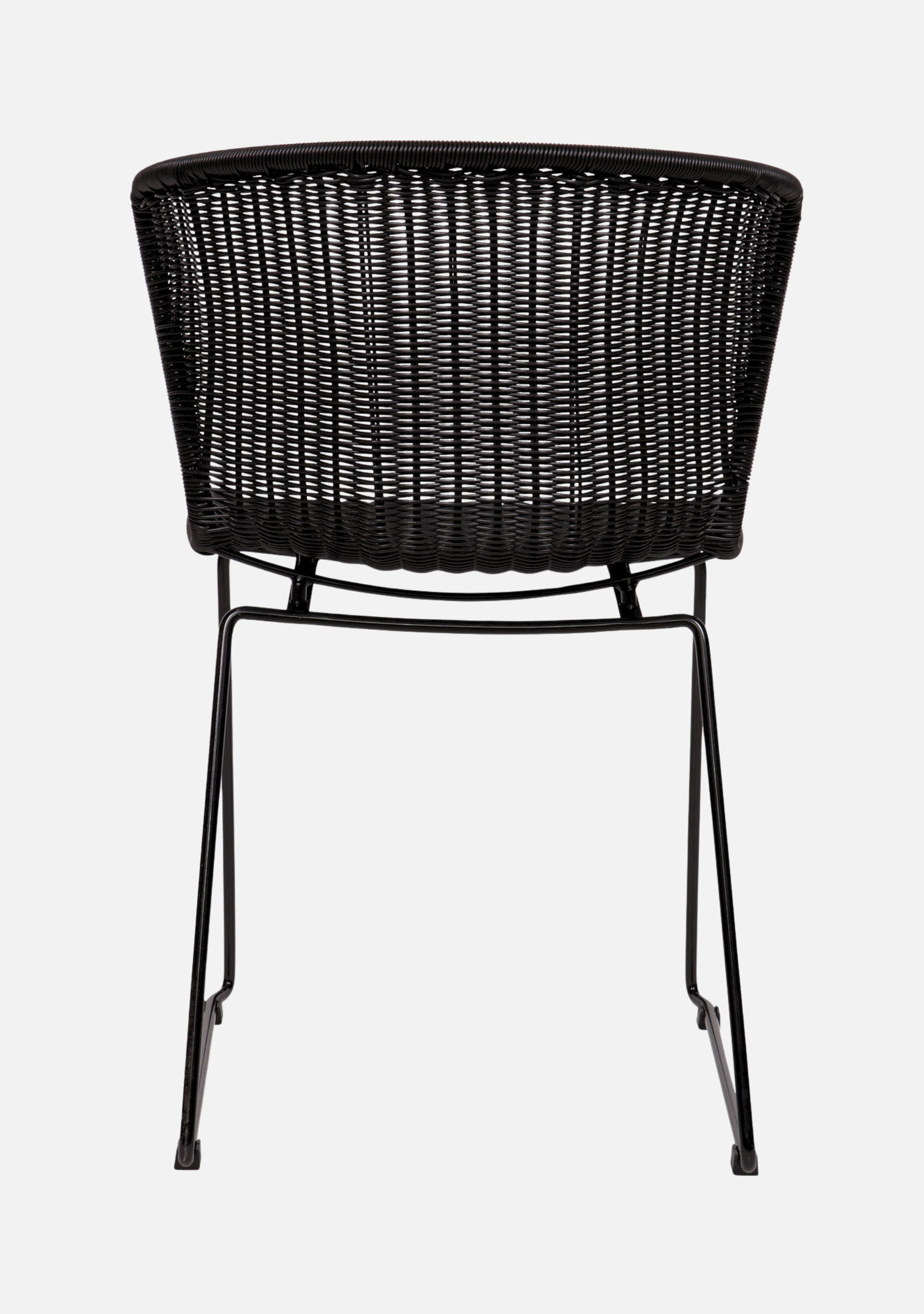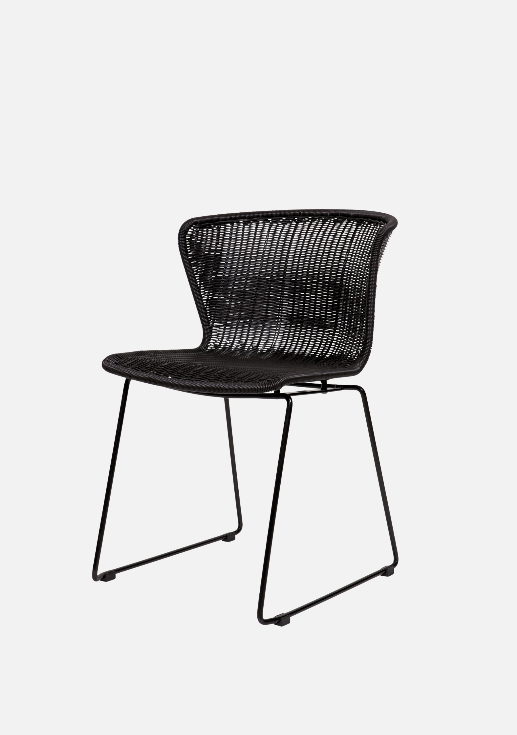 The Wings Chair blends sculptural design with outdoor comfort. Crafted from durable black braided PE rattan on a sleek powder-coated metal frame, it brings a refined, contemporary aesthetic to terraces, patios, and indoor dining areas alike.