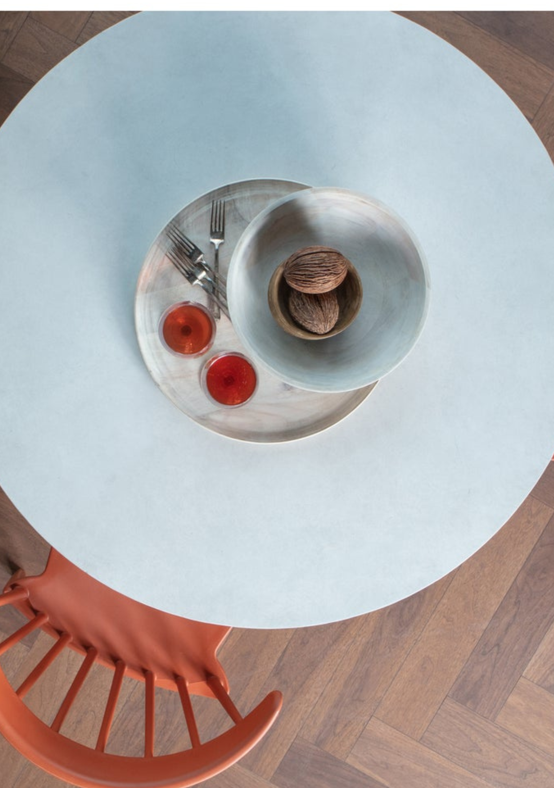 With its concrete-inspired texture and organic silhouette, this piece complements both minimalist and contemporary spaces — perfect for elegant dining areas, studios, or serene open-plan interiors.