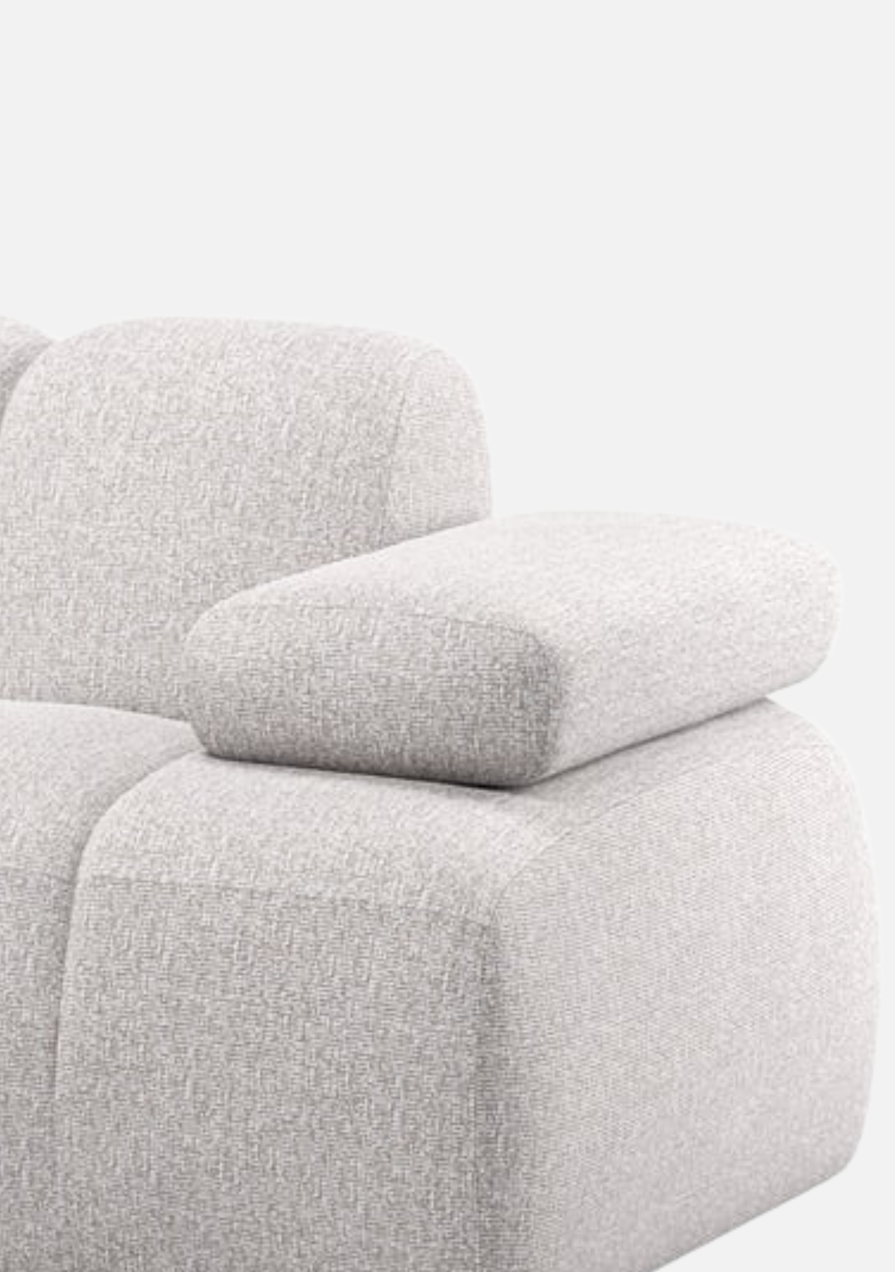 The Mojo Bouclé Chaise Longue in ecru melange brings sculptural purity and softness to modern living spaces. Crafted with care from high-quality bouclé, its tactile texture and neutral ecru tone radiate calm and understated luxury. The 284×160 cm silhouette features manually adjustable armrests and deep seating for complete comfort and relaxation. Perfect for minimalist, Japandi, and Scandinavian interiors, Mojo blends visual lightness with inviting warmth — a timeless expression of quiet sophistication and contemporary elegance.