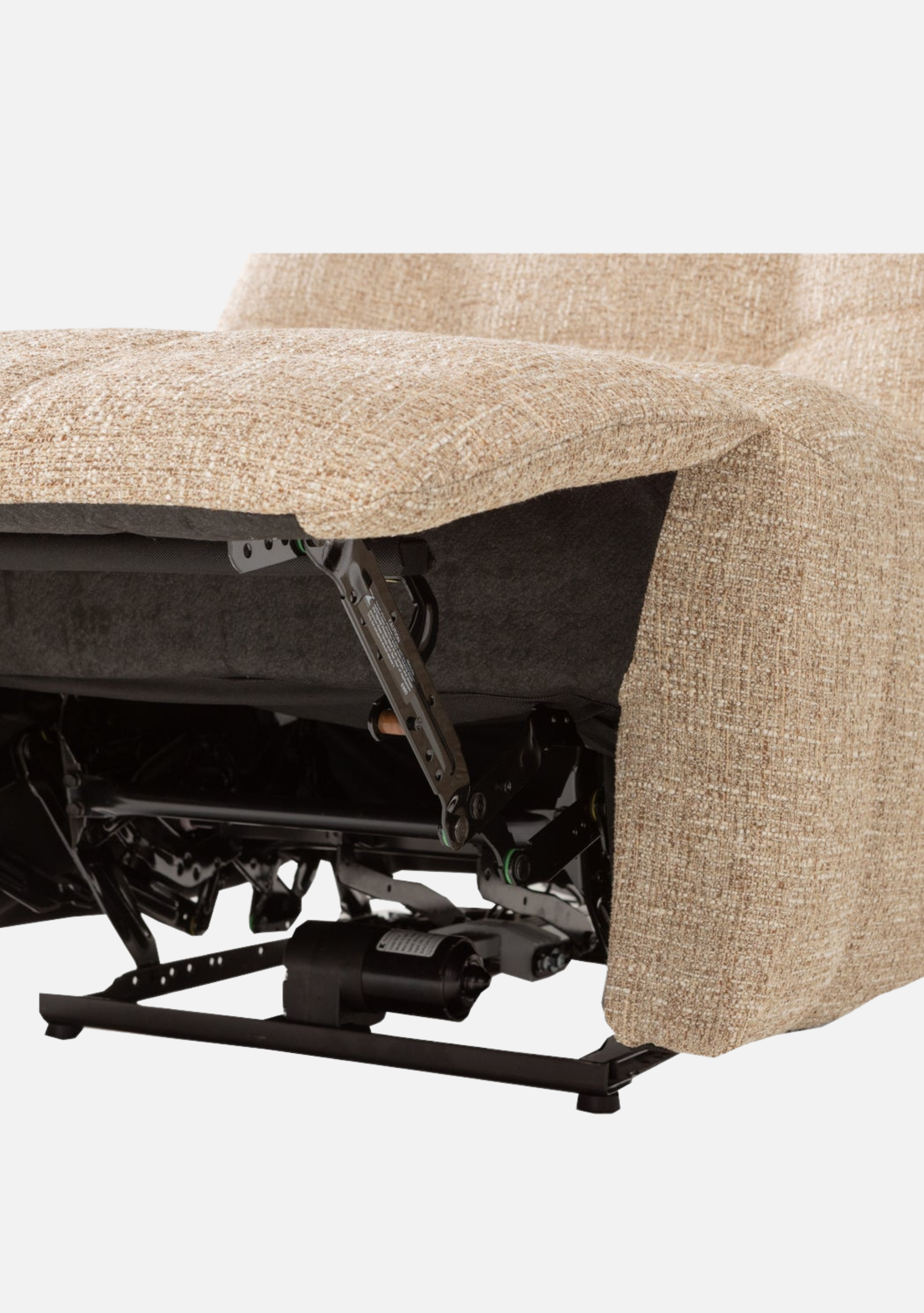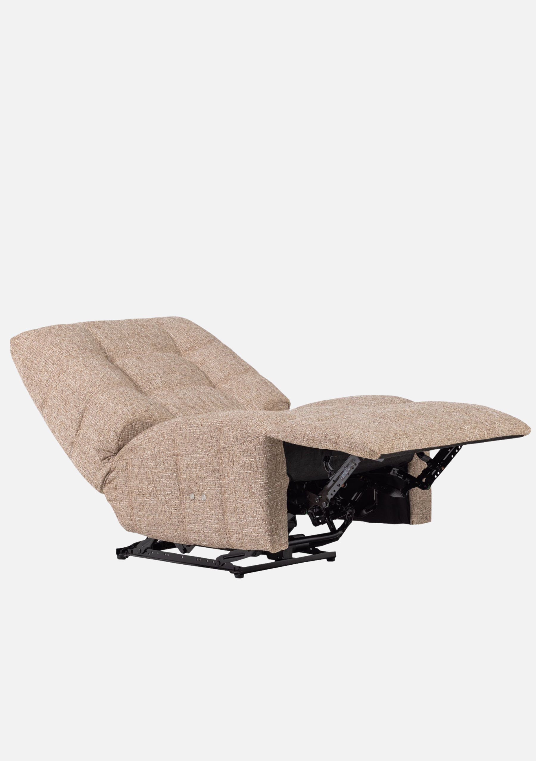 Electric recliner in soft natural mélange fabric. Timeless comfort meets modern relaxation.