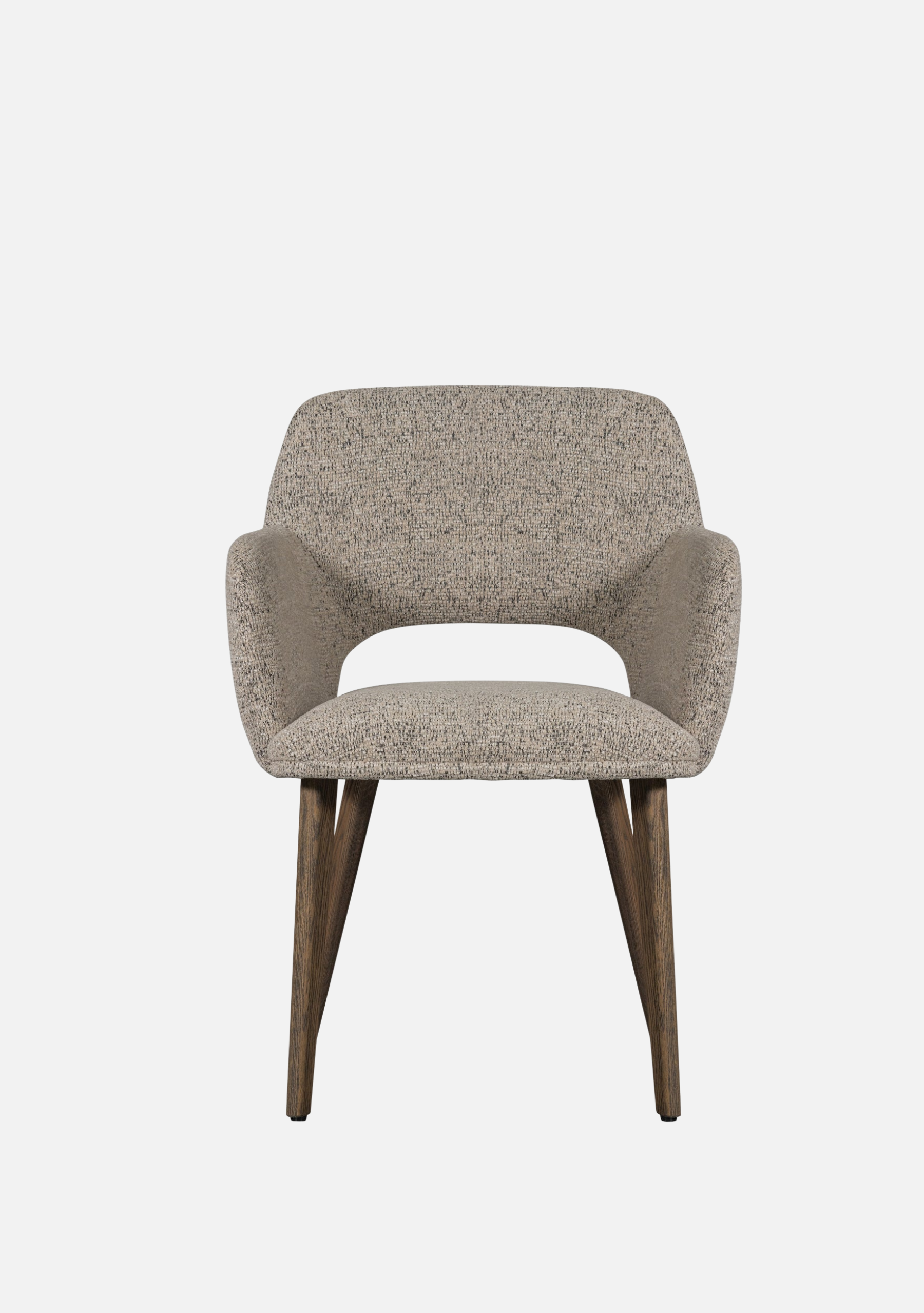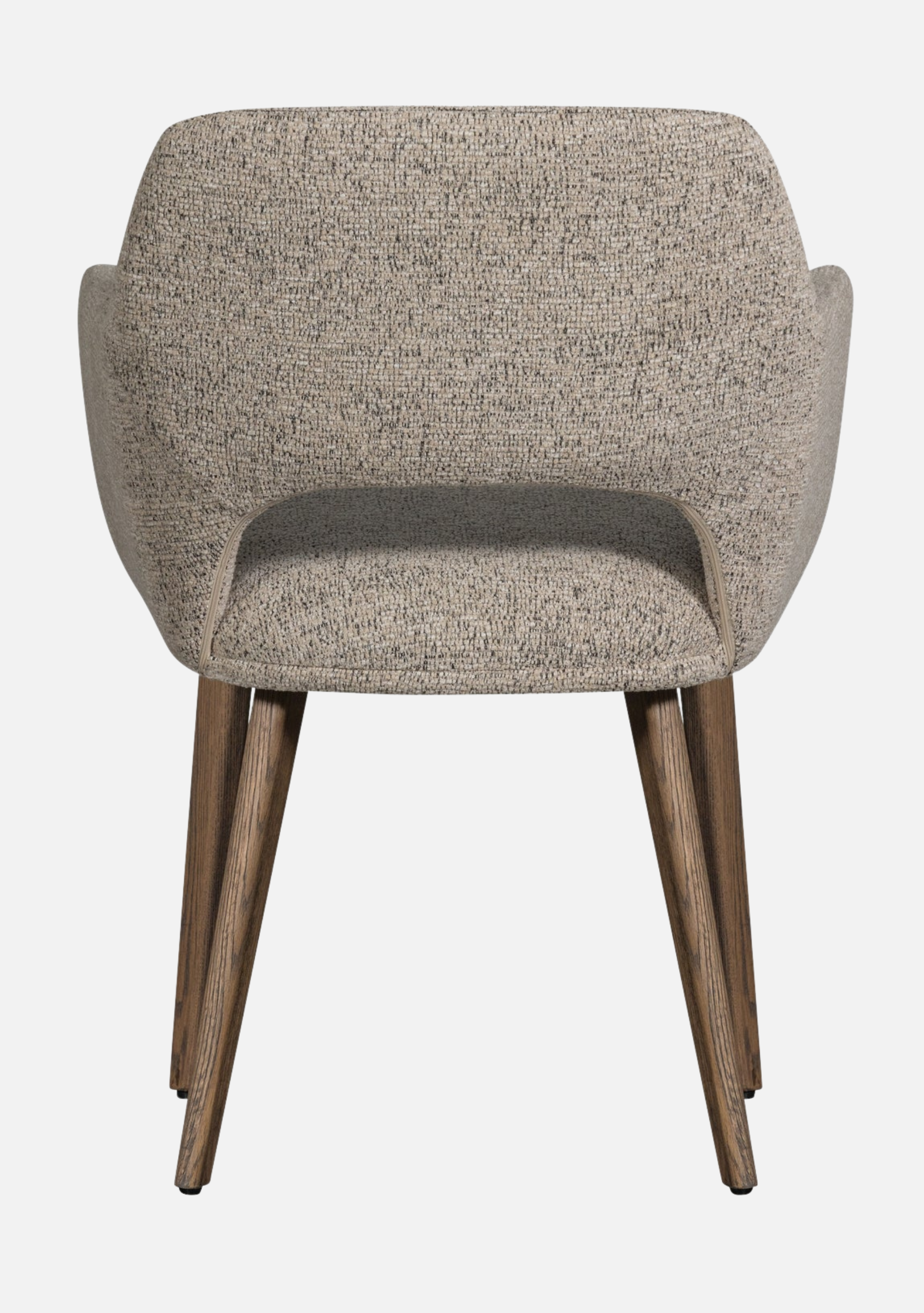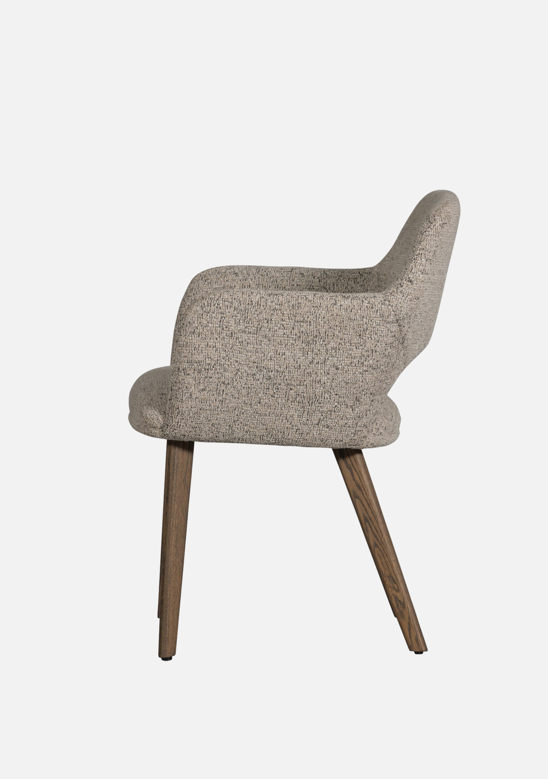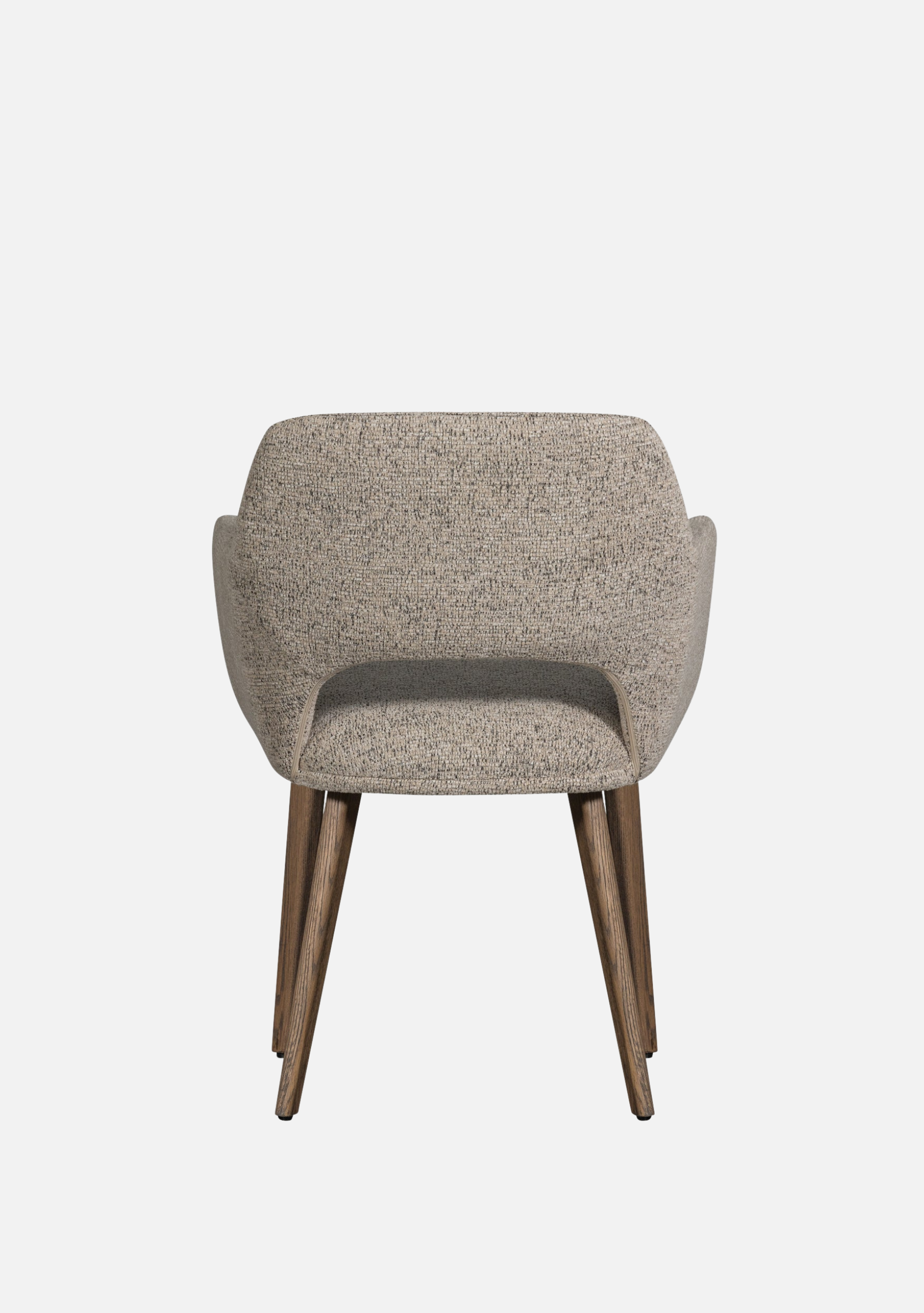 The Murat Natural Chairs bring a calm and timeless presence to contemporary interiors. Their sculptural shape embraces the body with refined comfort, while the dark oak legs add warmth and character. The soft woven chenille in a natural tone highlights tactile beauty and pairs effortlessly with both minimalist and earthy palettes. Designed for modern homes, restaurants, and boutique hotels, this set of two chairs blends craftsmanship, balance, and understated sophistication — elevating every dining moment.