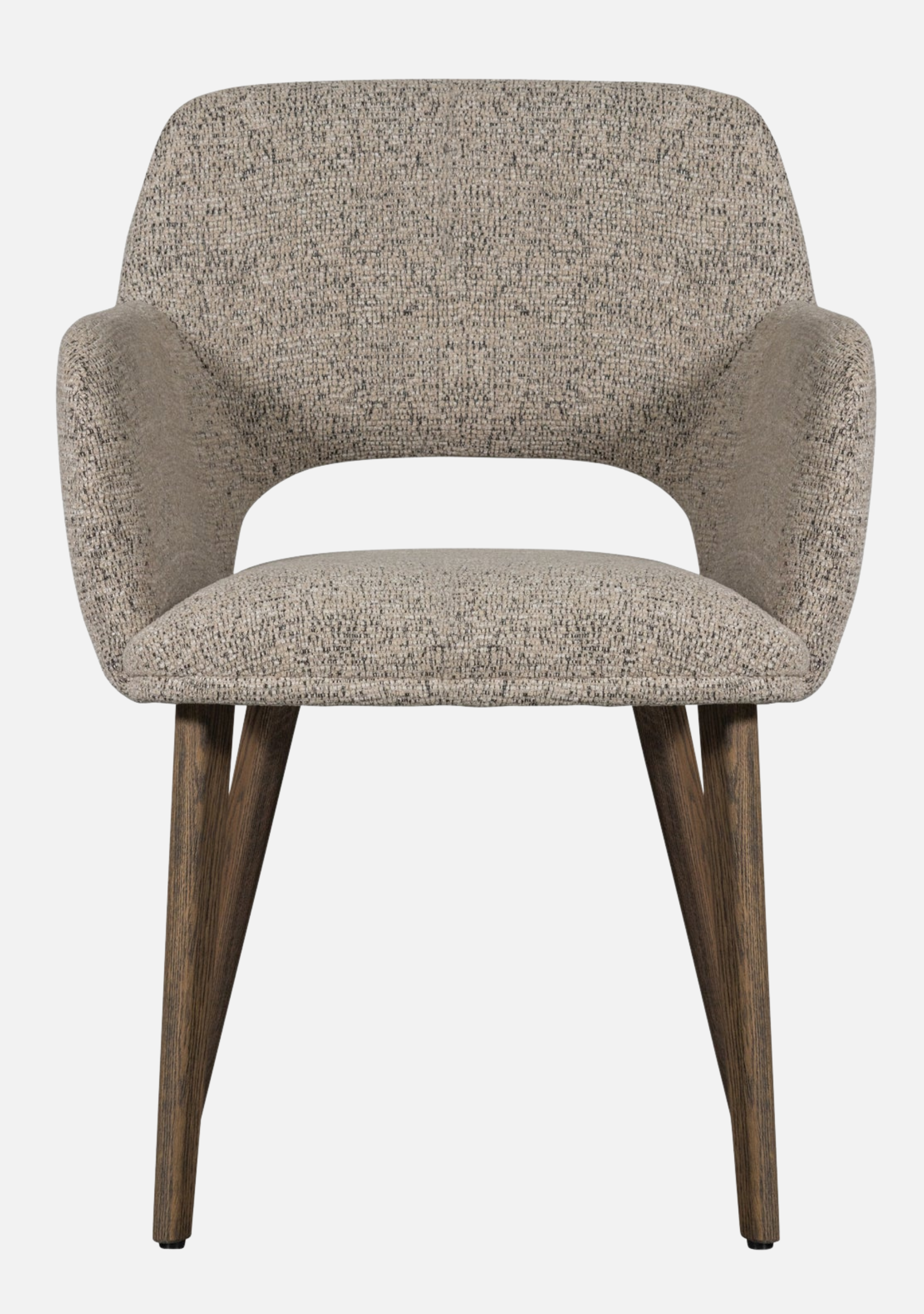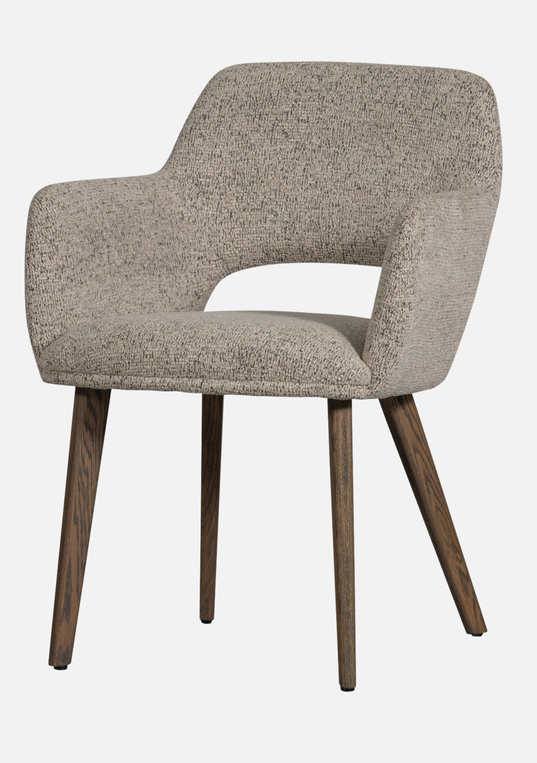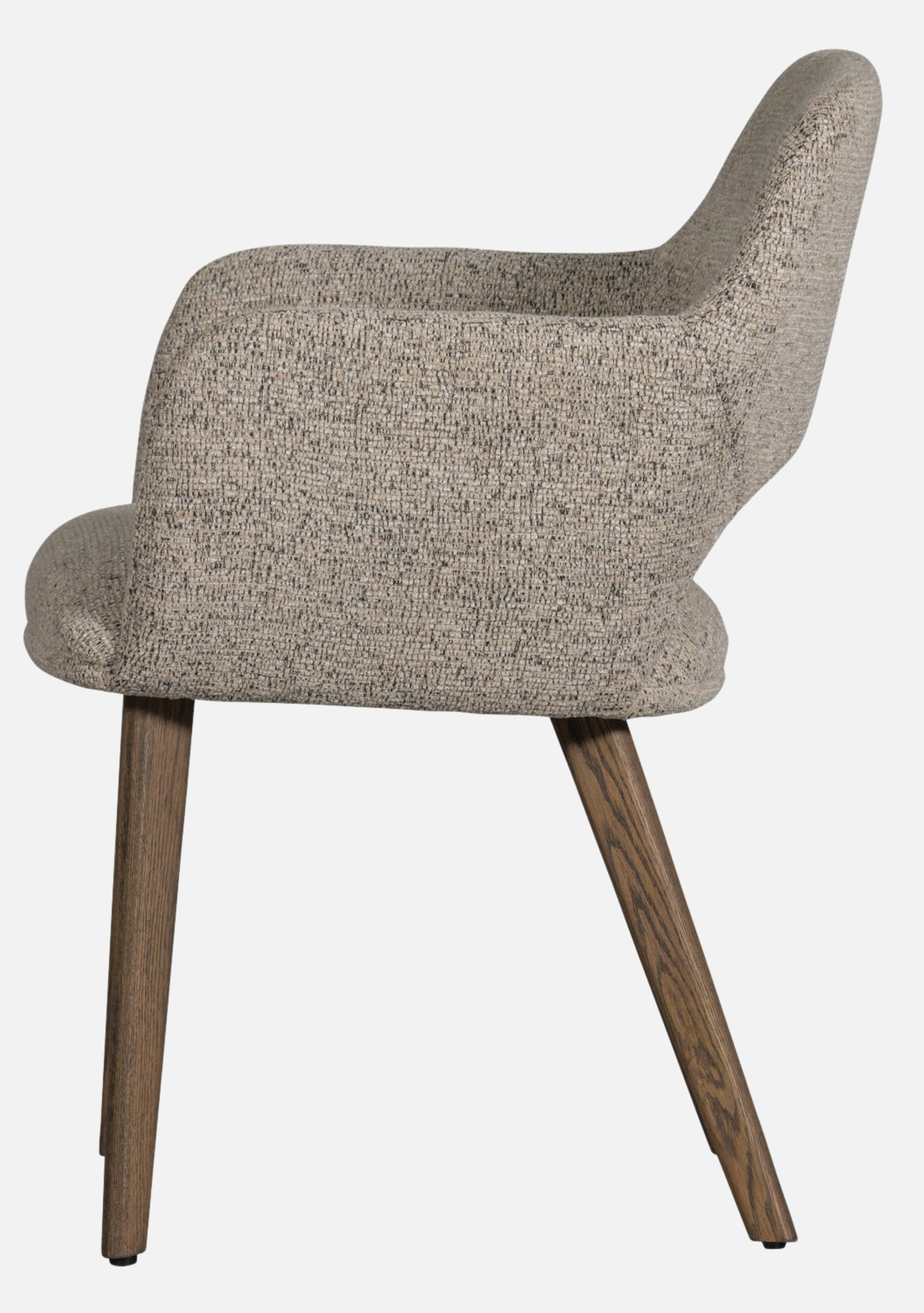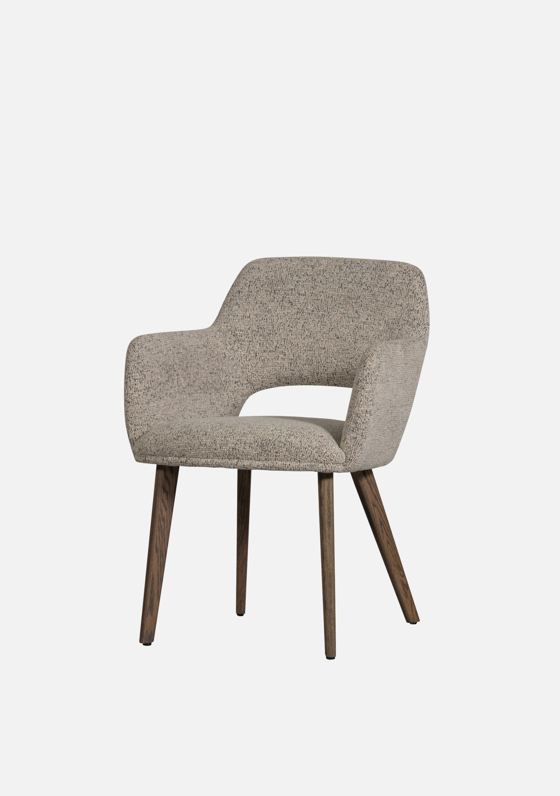 The Murat Natural Chairs bring a calm and timeless presence to contemporary interiors. Their sculptural shape embraces the body with refined comfort, while the dark oak legs add warmth and character. The soft woven chenille in a natural tone highlights tactile beauty and pairs effortlessly with both minimalist and earthy palettes. Designed for modern homes, restaurants, and boutique hotels, this set of two chairs blends craftsmanship, balance, and understated sophistication — elevating every dining moment.