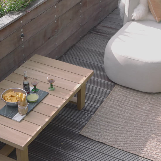 The sand-toned upholstery enhances its natural aesthetic, allowing the piece to blend seamlessly into minimalist, Mediterranean, or Japandi-inspired outdoor environments.