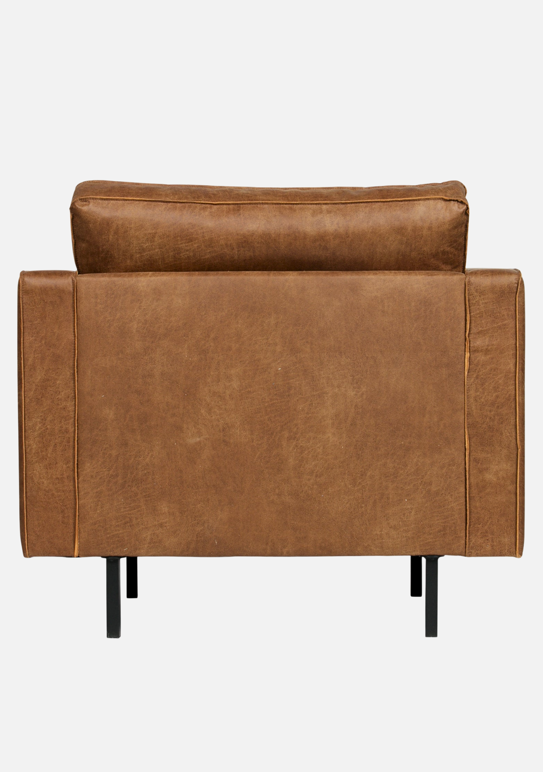 The Rodeo Armchair in cognac eco-leather combines timeless design with contemporary sophistication.