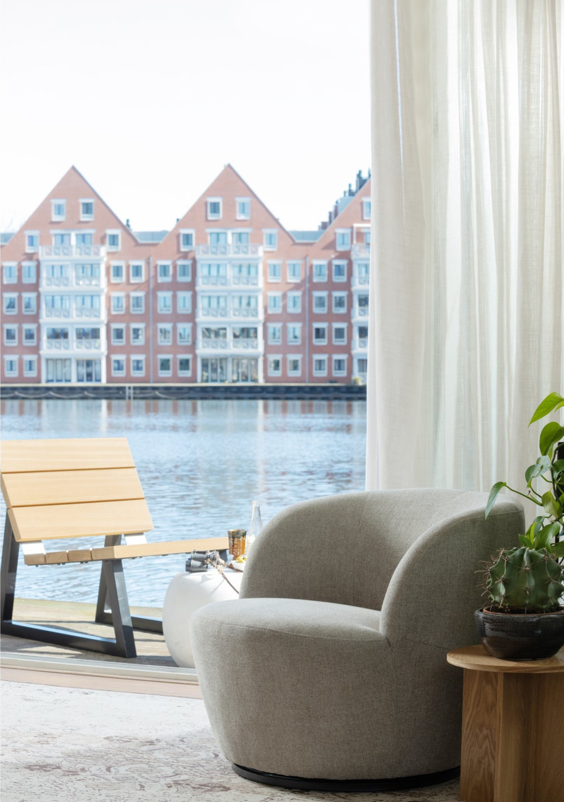 Its sculptural round silhouette offers a gentle embrace, creating an atmosphere of calm sophistication.