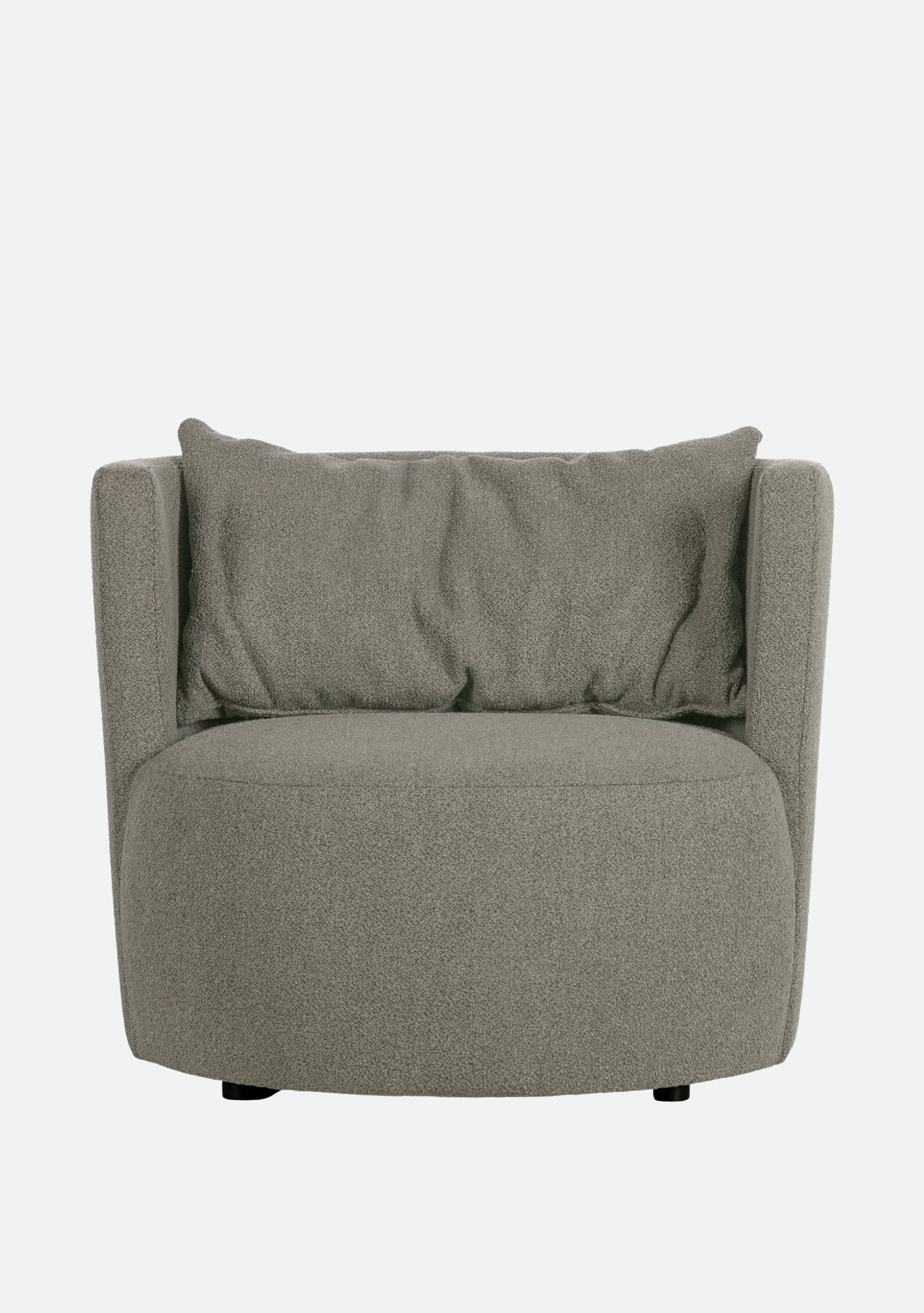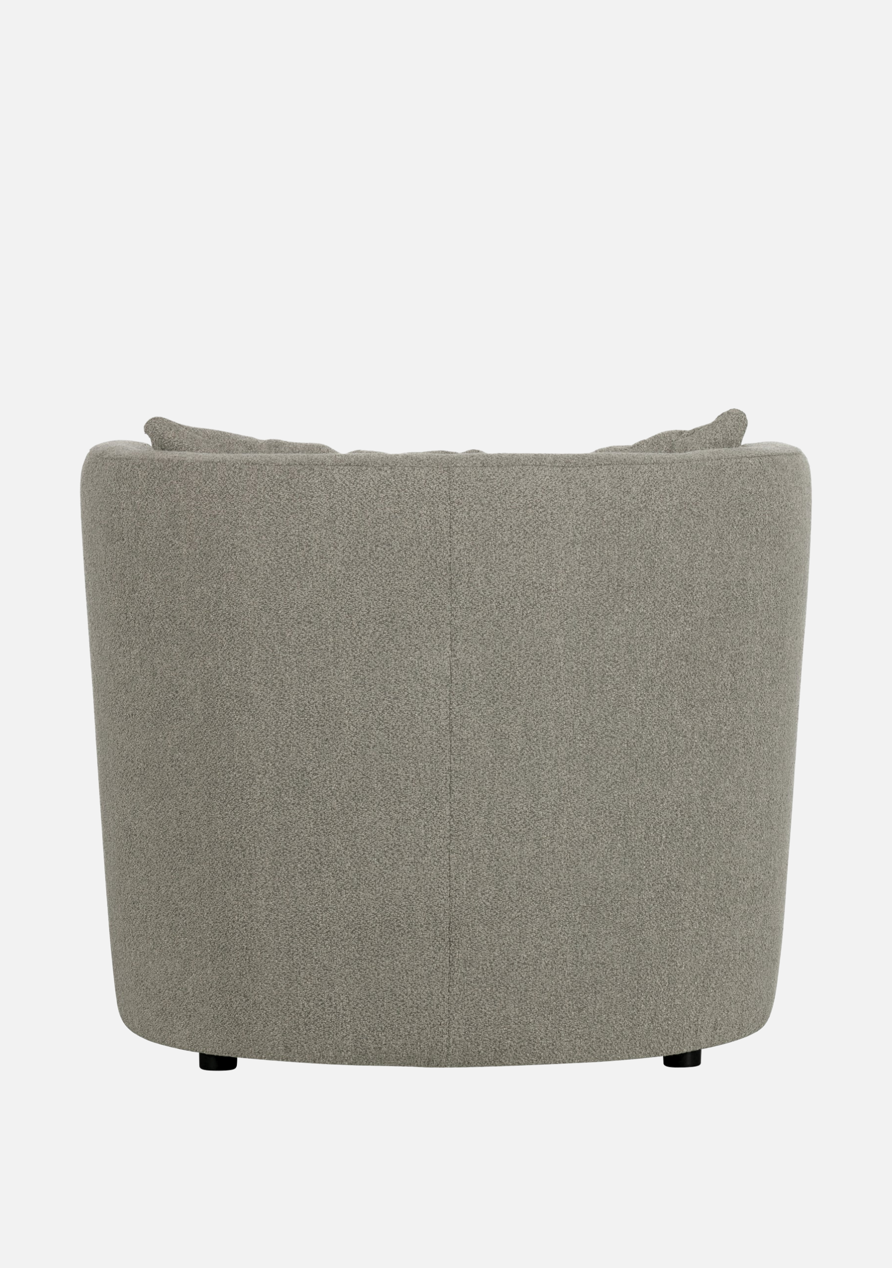 The Explore Armchair – Bouclé Grey blends architectural form with tactile comfort.