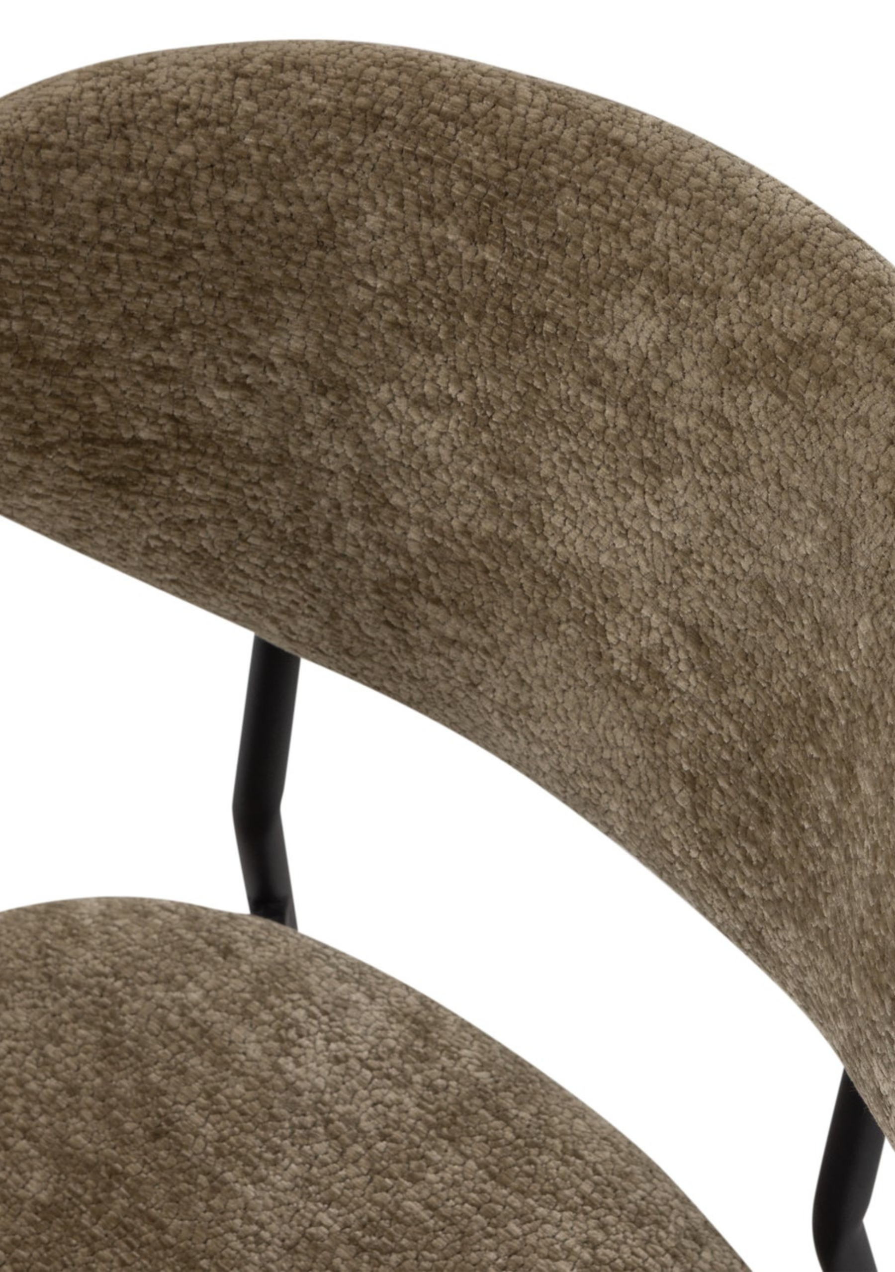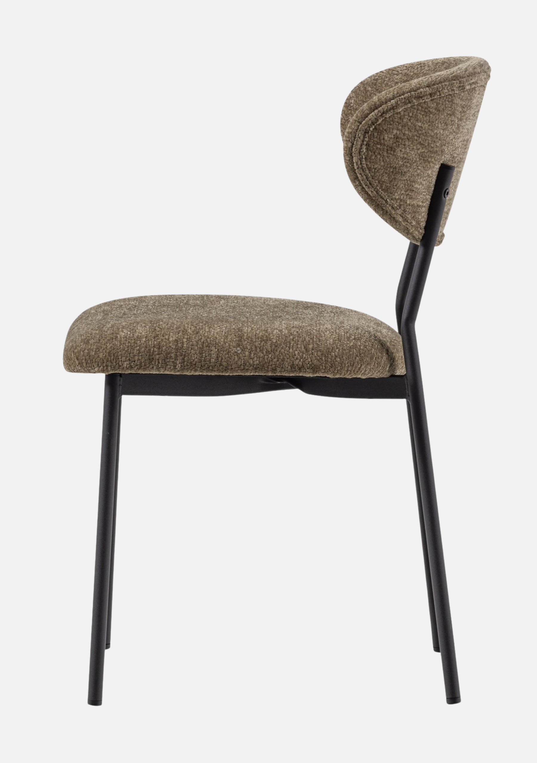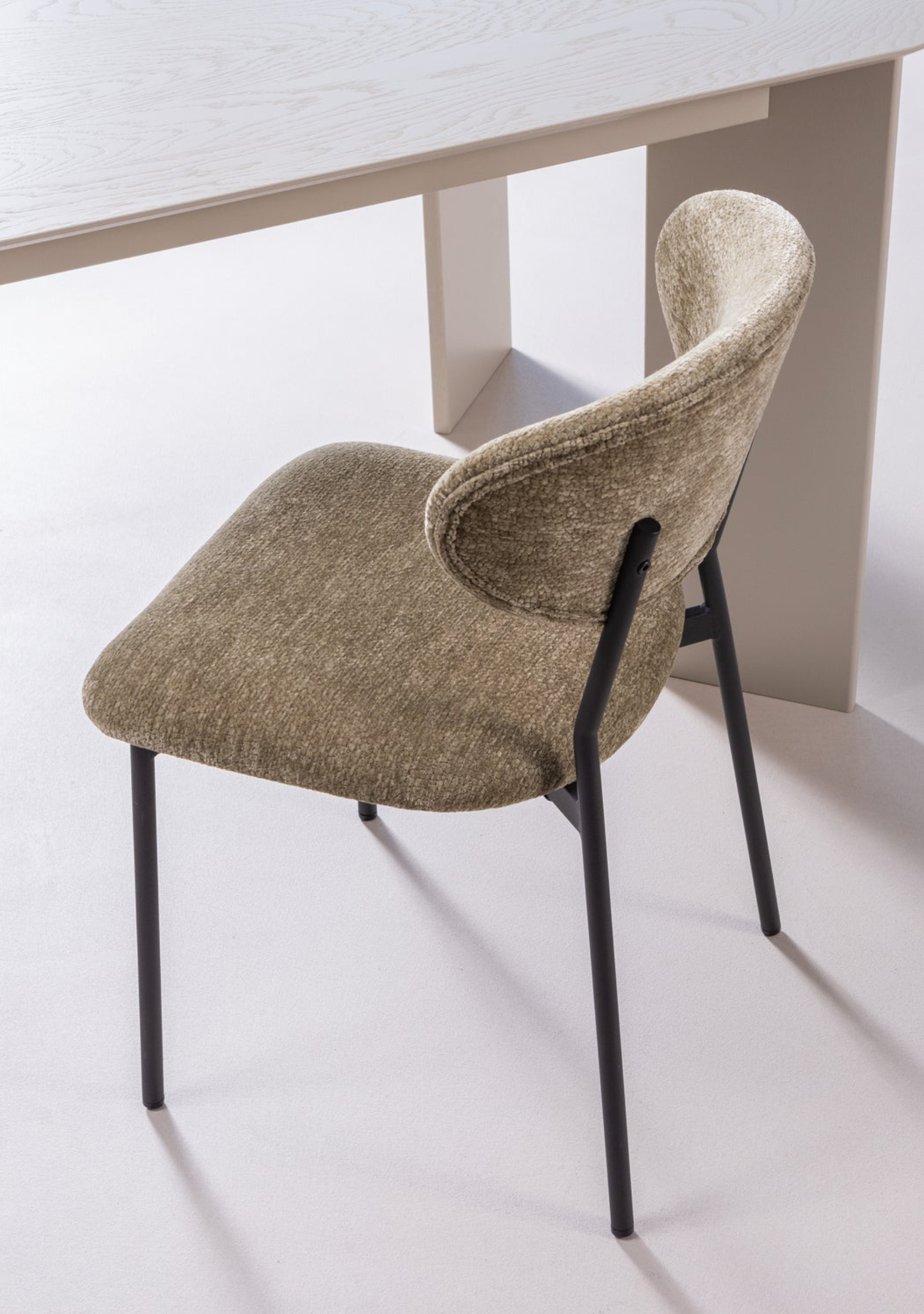The Kjeld Chairs in green redefine simplicity with elegance. Their curved silhouette and rich chenille texture create a soft yet contemporary statement. The deep natural tone brings calm and balance, while the slim black metal frame adds modern refinement. Designed for both residential and commercial spaces, these chairs offer versatility — ideal for dining rooms, restaurants, and boutique hotels. Delivered as a set of two, the Kjeld combines comfort, tactile luxury, and enduring style for interiors that value quiet sophistication.