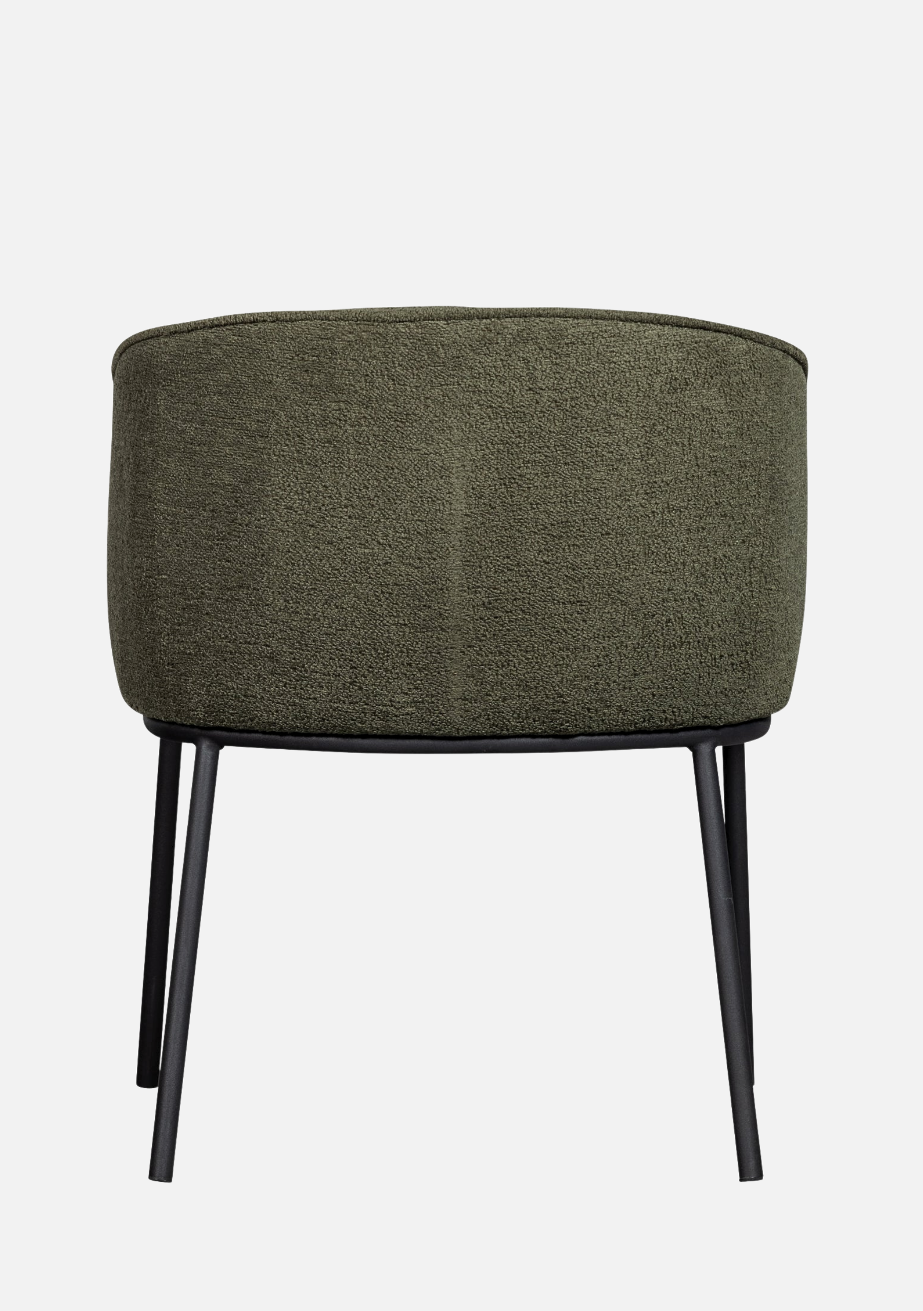 The Leon Dining Chair in forest green bouclé captures the essence of organic comfort and understated elegance.