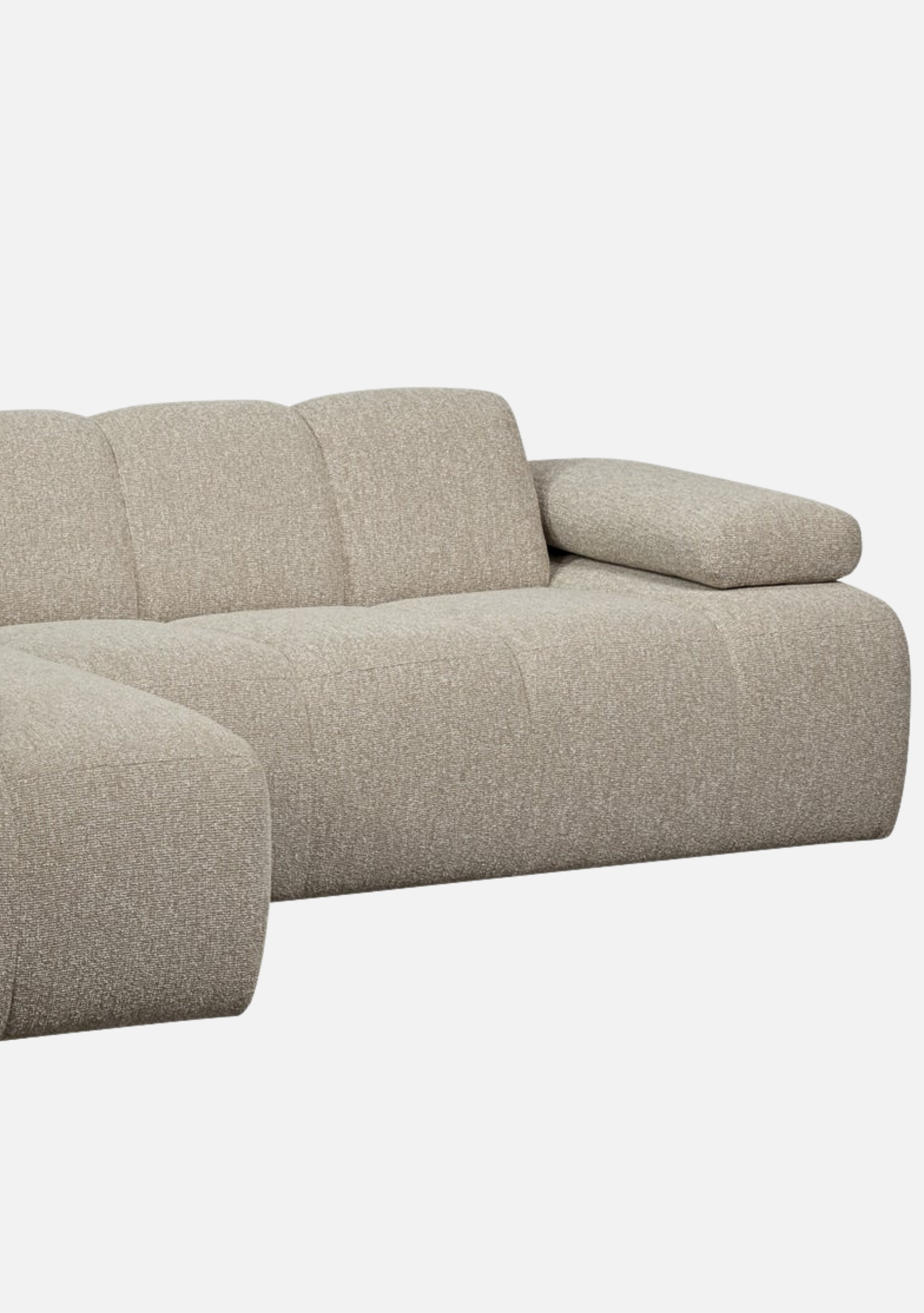 Left chaise sofa 284×160 cm in beige bouclé. Soft texture, sculptural form, and timeless calm for modern natural interiors.